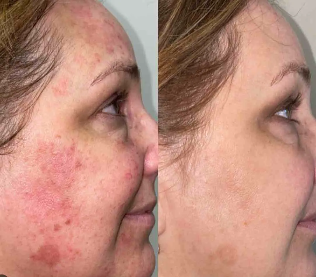 Процедурата оставя кожата по-уравновесена, с по-равномерен тен и значително редуцирано зачервяване още след първите процедури.