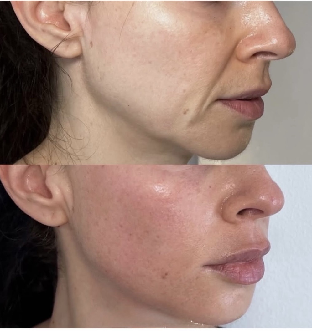 Процедурата стимулира производството на колаген и стяга кожата, редуцирайки отпуснатостта и фините линии.